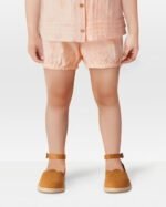 She’s boho chic in this cotton pair. Complete with an easy on waistband and an allover seashell print, these shorts are a must-pack for the next family beach trip.
